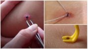 - Tireu les pessigolles amb fil. Cal agafar un fil regular i embolicar-lo suaument diverses vegades al voltant del paràsit a prop de la pell mateixa. Aleshores, en suaus moviments en espiral, traieu-lo de la ferida. El procés pot durar diversos minuts.
