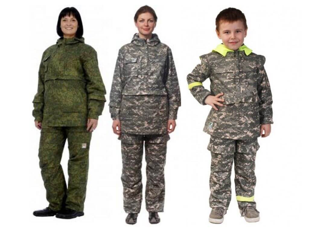 Maskedrakten tillader huden at trække vejret frit, uniformer kan bruges når som helst på året. Det universelle sæt modstår myg om sommeren, holder varmen om vinteren og forhindrer frysning.