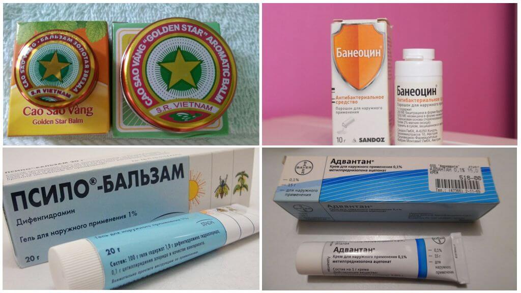 Vyberajú sa individuálne v závislosti od klinického obrazu. Na urýchlenie regenerácie epidermy sa odporúča používať homeopatické lieky. Na zastavenie alergickej reakcie sa používajú antihistaminiká na lubrikáciu pokožky, požitie, ako aj antialergické masti. V prípade sekundárnej infekcie - hnisanie, boláky, sa používajú lokálne antibiotiká.