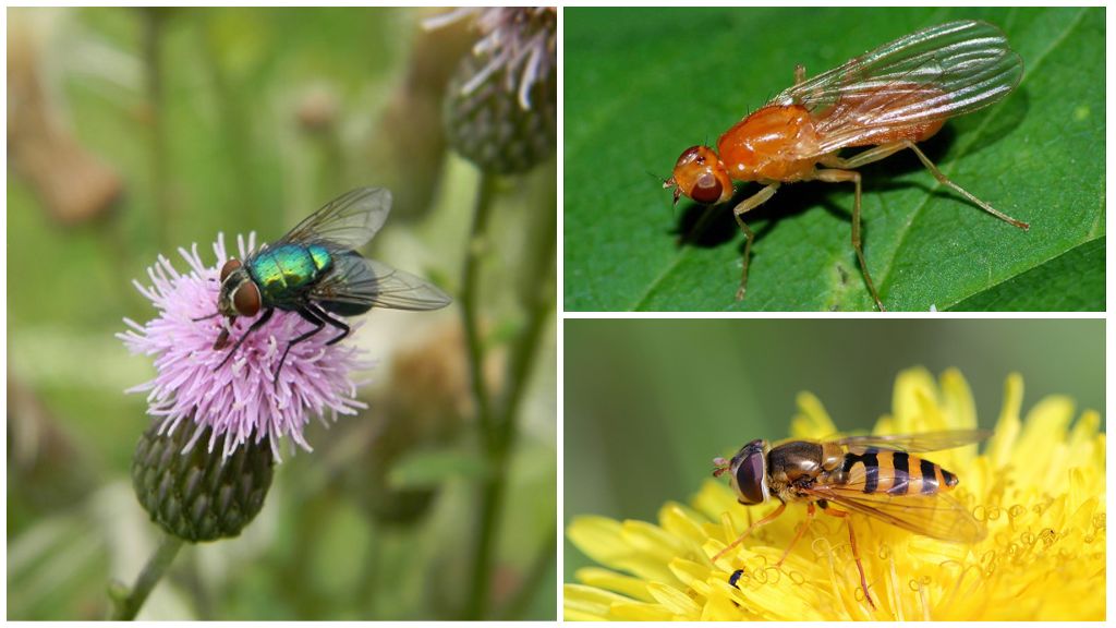 มีผู้อ่านประมาณห้าพันคนในโลกนี้ แมลงวัน. พวกเขาแตกต่างกันในสีขนาดและคุณสมบัติของชีวิต ส่วนใหญ่ของพวกเขากินน้ำผลไม้พืชเนื้อที่ผลไม้ซากพืชปุ๋ยมูลสัตว์ เครื่องมือในช่องปากของพวกเขาติดตั้งงวงพิเศษสำหรับการดูดซึมอาหาร แต่มันนิ่มจนไม่สามารถเจาะผิวหนังของบุคคลหรือสัตว์ แมลงดังกล่าวไม่กัดคนไม่โจมตีสัตว์เลี้ยงสัตว์ป่า