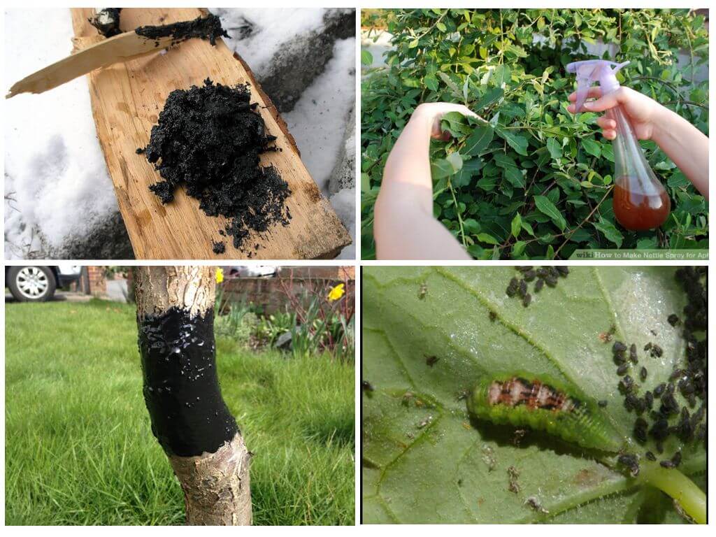 คุณสามารถใช้น้ำมันดินจากเพลี้ยบนต้นไม้และพุ่มไม้ มันผสมกับ ขี้เถ้าไม้ และส่วนผสมที่ได้จะถูกเคลือบด้วยลำต้นของต้นไม้ องค์ประกอบและศัตรูพืชดังกล่าวจะทำให้ตกใจและป้องกันการพัฒนาของการติดเชื้อไวรัส