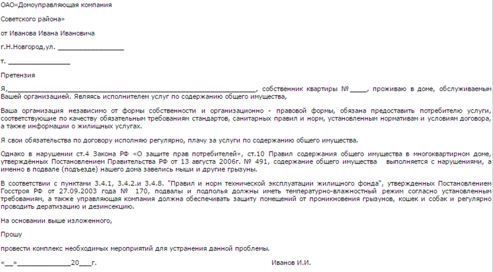 Sa isang sitwasyon kung saan ang kumpanya ng pamamahala ay dapat magsagawa ng control ng peste, ngunit tumangging gawin ito, nagsusulat sila ng isang reklamo sa SES, Rospotrebnadzor o opisina ng tagausig.