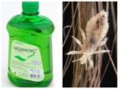 - Bago gamitin, ang concentrate ay dapat na lasaw ng tubig sa ratio: 1 bote (24 ml) bawat 300 ml ng tubig. Ang nagresultang solusyon sa isang pamunas ay inilalapat sa buhok sa buong haba at sa balat, hadhad. Matapos ang 20-30 minuto, ang sangkap ay dapat hugasan ng maraming tubig gamit ang sabon o ordinaryong shampoo.